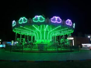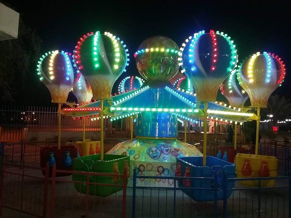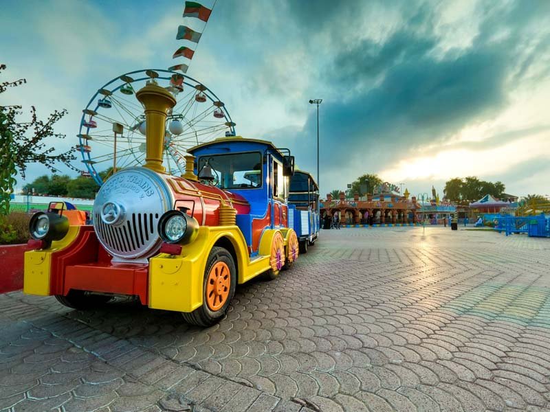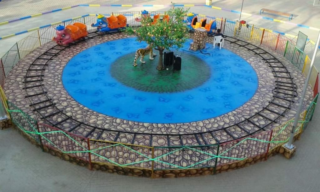 Slides, swings, seesaws, and interactive rides.